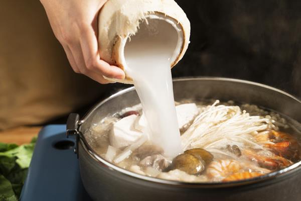 椰子雞清甜蜜味又暖胃的做法步驟:1.準備食材,一只斬件雞,紅棗枸杞洗凈2.兩瓶椰子水倒進鍋里3.加入紅棗枸杞一起燒開4.倒入雞塊5.蓋上蓋子煮開6.燒開后再燜3分鐘即可食用7.蘸上火鍋蘸料,超香。烹飪技巧不可煮久,不然雞肉老柴,也不需要放油鹽。